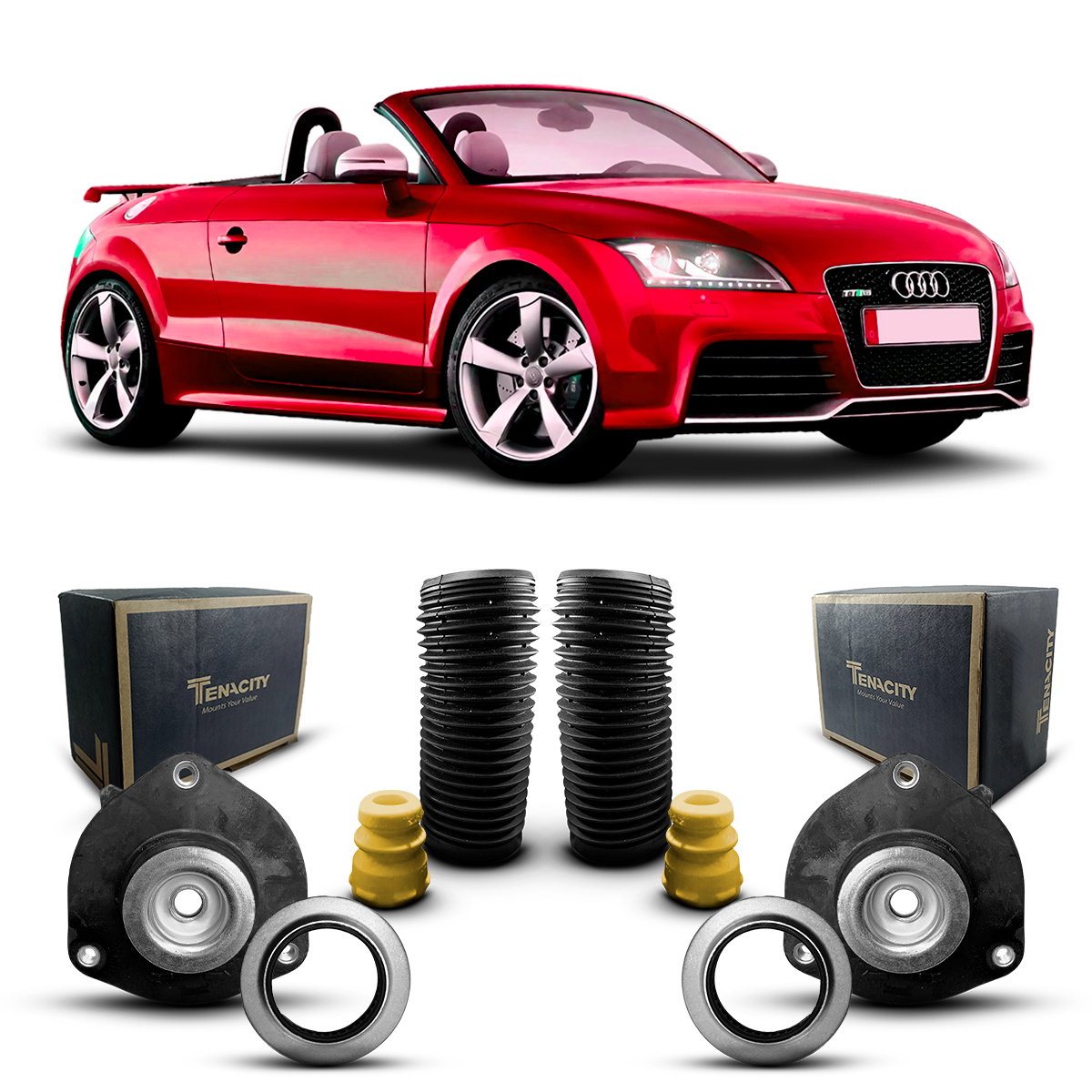 Resposta: Os coxins são da marca Tenacity, uma das principais marcas de reposição do mercado. Os rolamentos, batentes e coifas são da marca Auto Importados, marca própria de extrema qualidade.