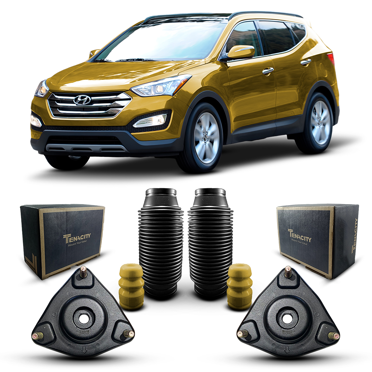 Resposta: Os coxins são da marca Tenacity, uma das principais marcas de reposição do mercado. Os batentes e coifas são da marca Auto Importados, marca própria de extrema qualidade.