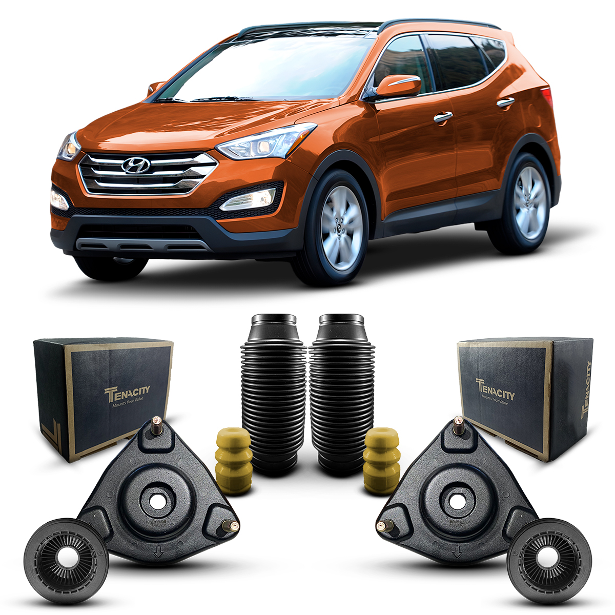 Resposta: Os coxins são da marca Tenacity, uma das principais marcas de reposição do mercado. Os rolamentos, batentes e coifas são da marca Auto Importados, marca própria de extrema qualidade.