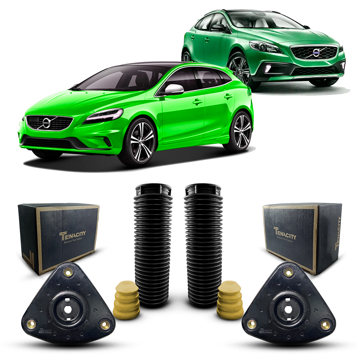 Resposta: Os coxins são da marca Tenacity, uma das principais marcas de reposição do mercado. Os batentes e coifas são da marca Auto Importados, marca própria de extrema qualidade.